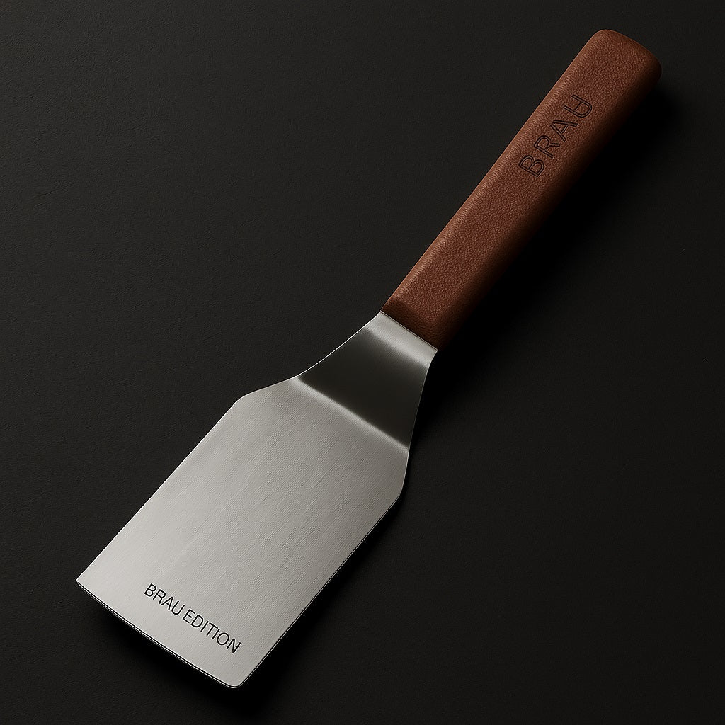 Su filo recto y afilado está pensado para girar, prensar o raspar con firmeza sobre la plancha o la parrilla.